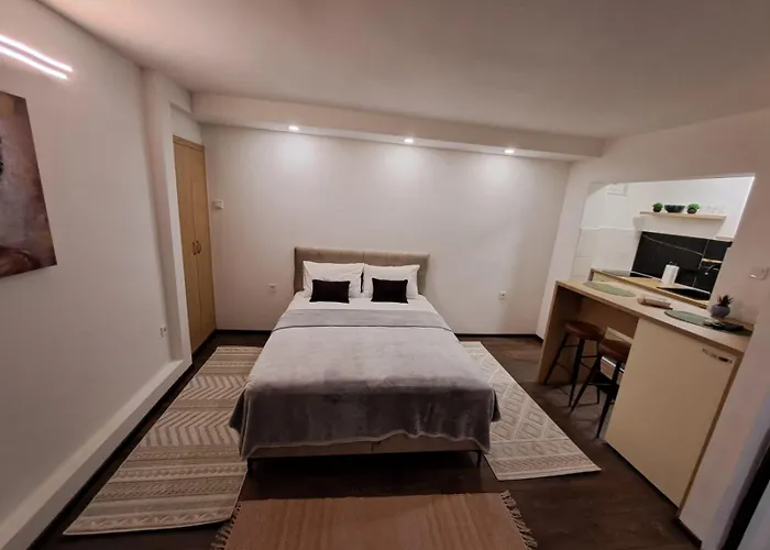 The 40 m² Apartman Ae Mostar is located just 0.8 km from Spanish Square and about a 20-minute walk from the War Photo Exhibition. Staying in this 1-bedroom apartment, nestled within reach of the rebuilt 16th-century Ottoman Old Bridge, guests can relax on a terrace.